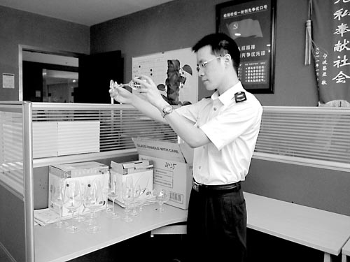 寧波檢驗(yàn)檢疫局對(duì)進(jìn)口高級(jí)玻璃高腳杯進(jìn)行抽樣檢測(cè)